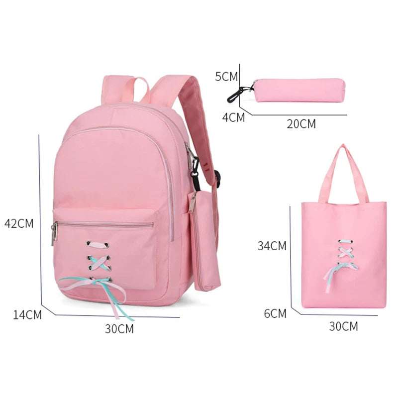 Description:This backpack set is perfect for teenage girls with its stylish lace design and high school-ready features. Includes a backpack, shoulder bag, and high-capacity bag.Features: Stylish lace design for a trendy look Includes backpack, shoulder bag, and high-capacity bag Perfect for high school students Durable canvas material for long-lasting use...