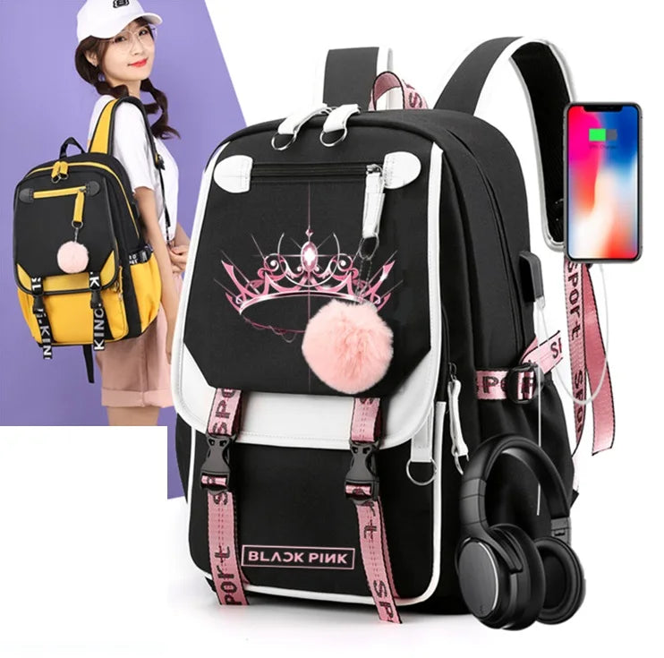 Teenager Backpack Pink Girls School Bags Large Capacity Knapsack