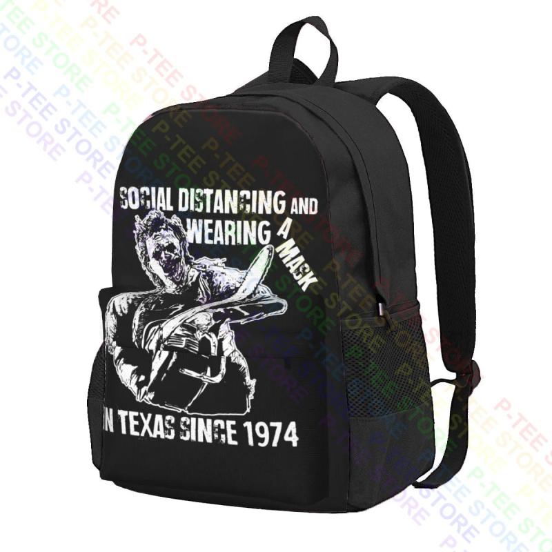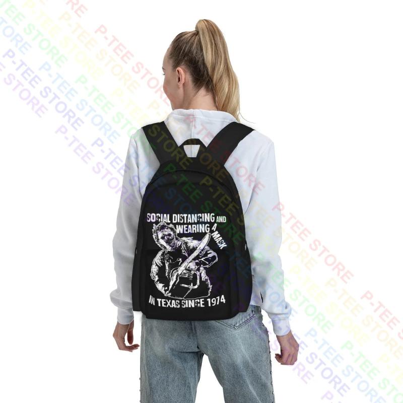 Stay safe while showcasing your style with this large capacity backpack featuring Leather Face from Texas Chainsaw Massacre. Ideal for social distancing and mask-wearing.