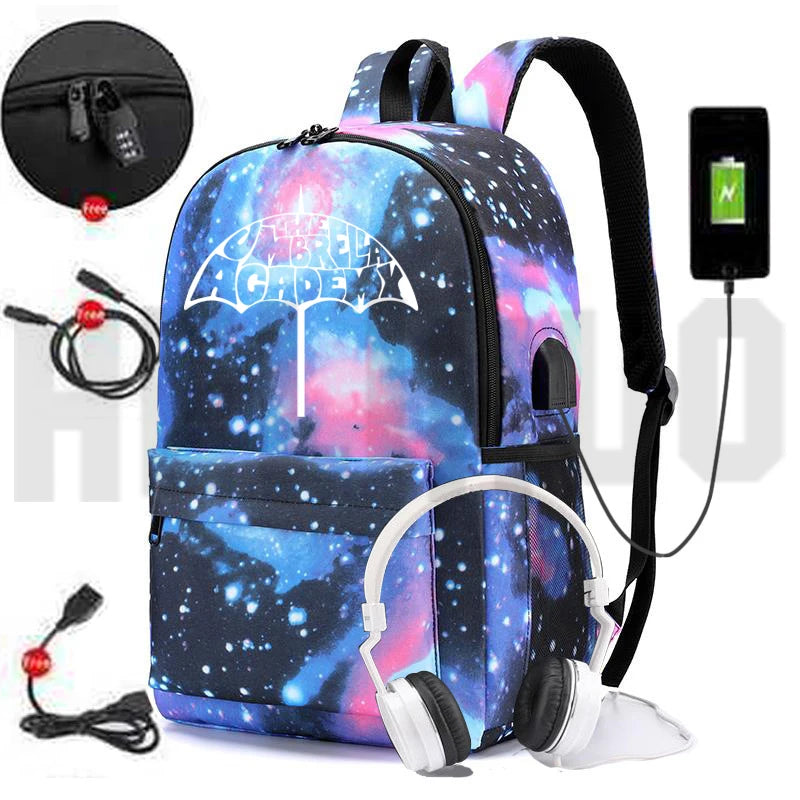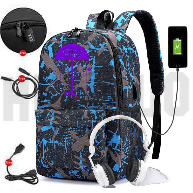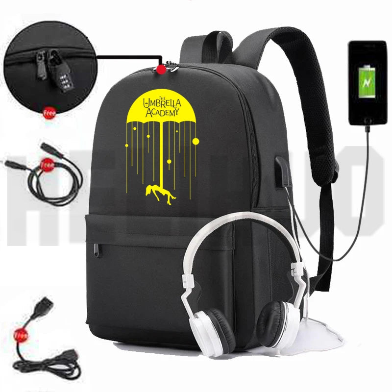 Description:Stay stylish with this anti-theft backpack featuring The Umbrella Academy design. Perfect for high school use by teenage girls.Features: The Umbrella Academy design USB charging capability Anti-theft features Softback for comfortable wear Ideal for high school teenage girls This product may be available in additional colours and sizes. Please contact...