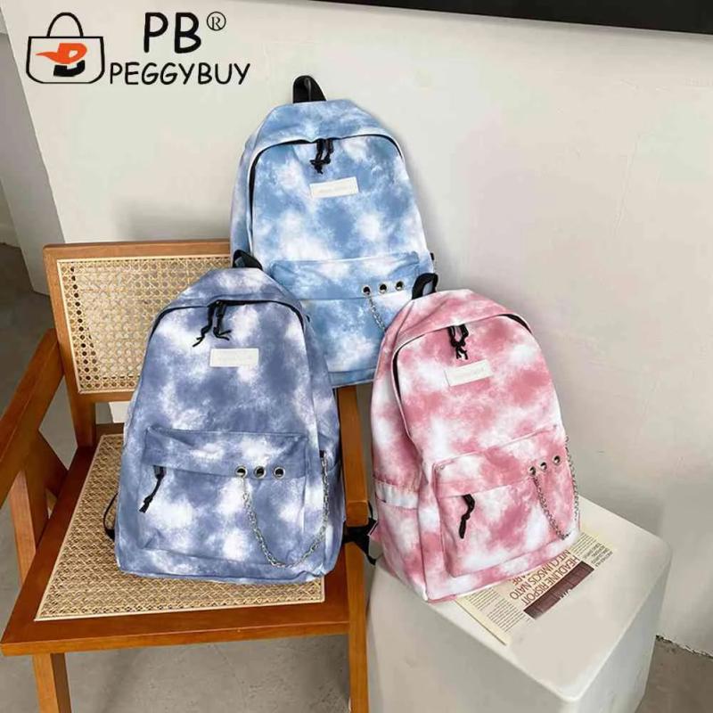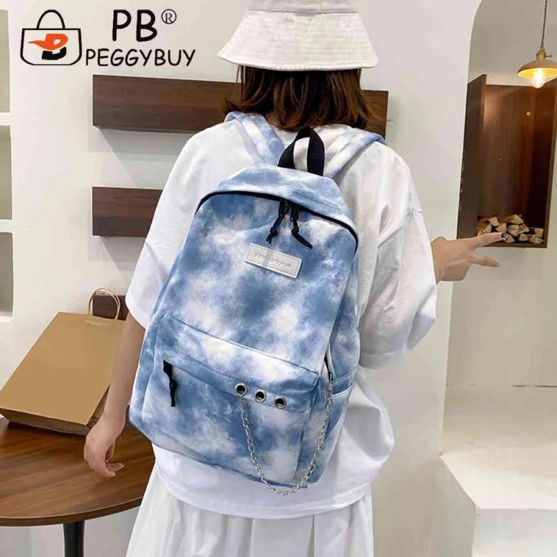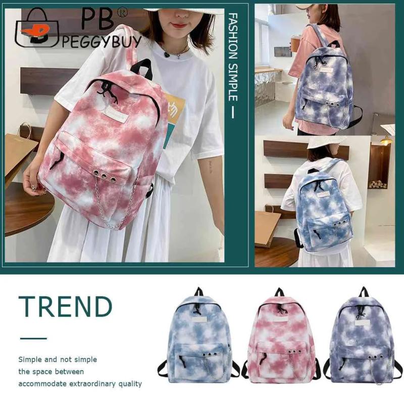 This casual tie dye school bag is perfect for girls with its large capacity and multi-layer pockets. It features a stylish gradient chain design on durable canvas material.