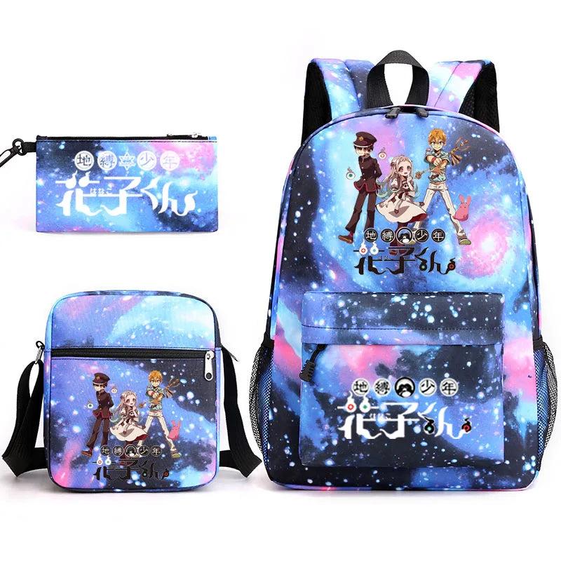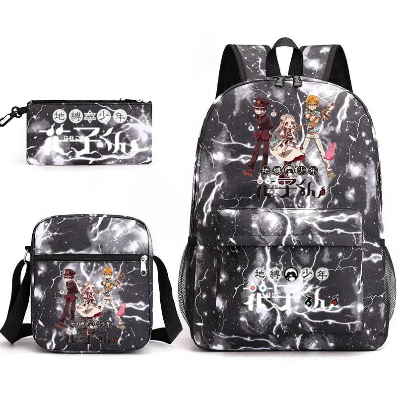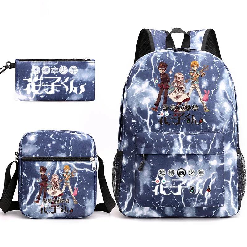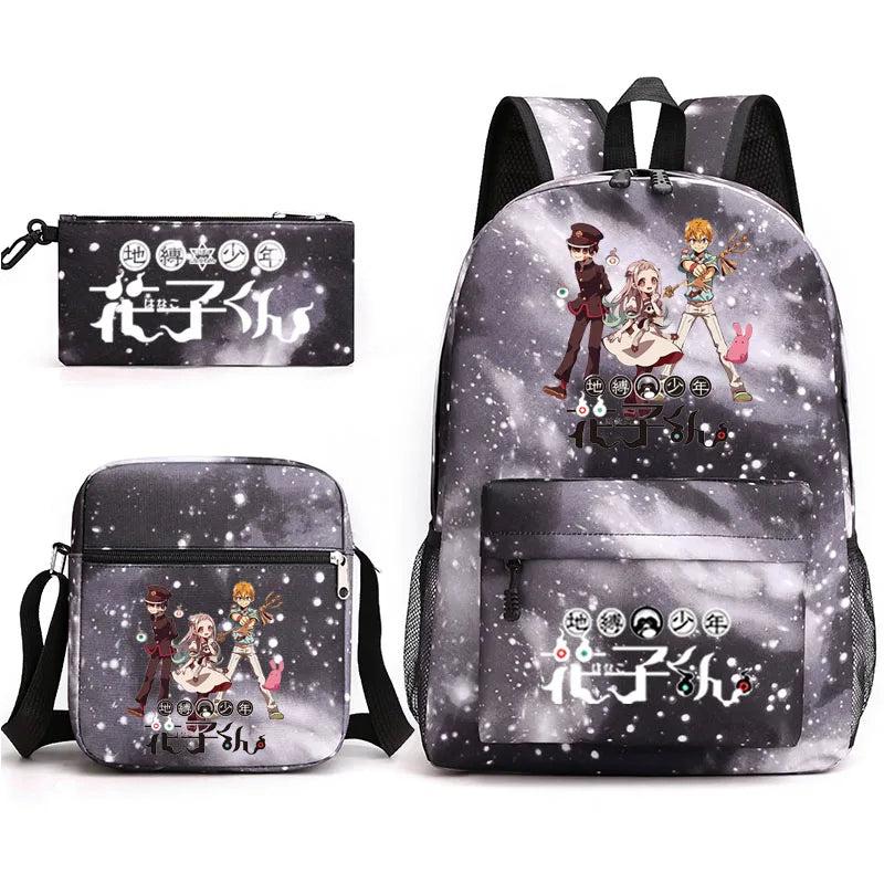 This 3pc set includes a stylish backpack, spacious casual bag, and a matching pencil case featuring Toilet-Bound Hanako. Ideal for school, work or daily use.