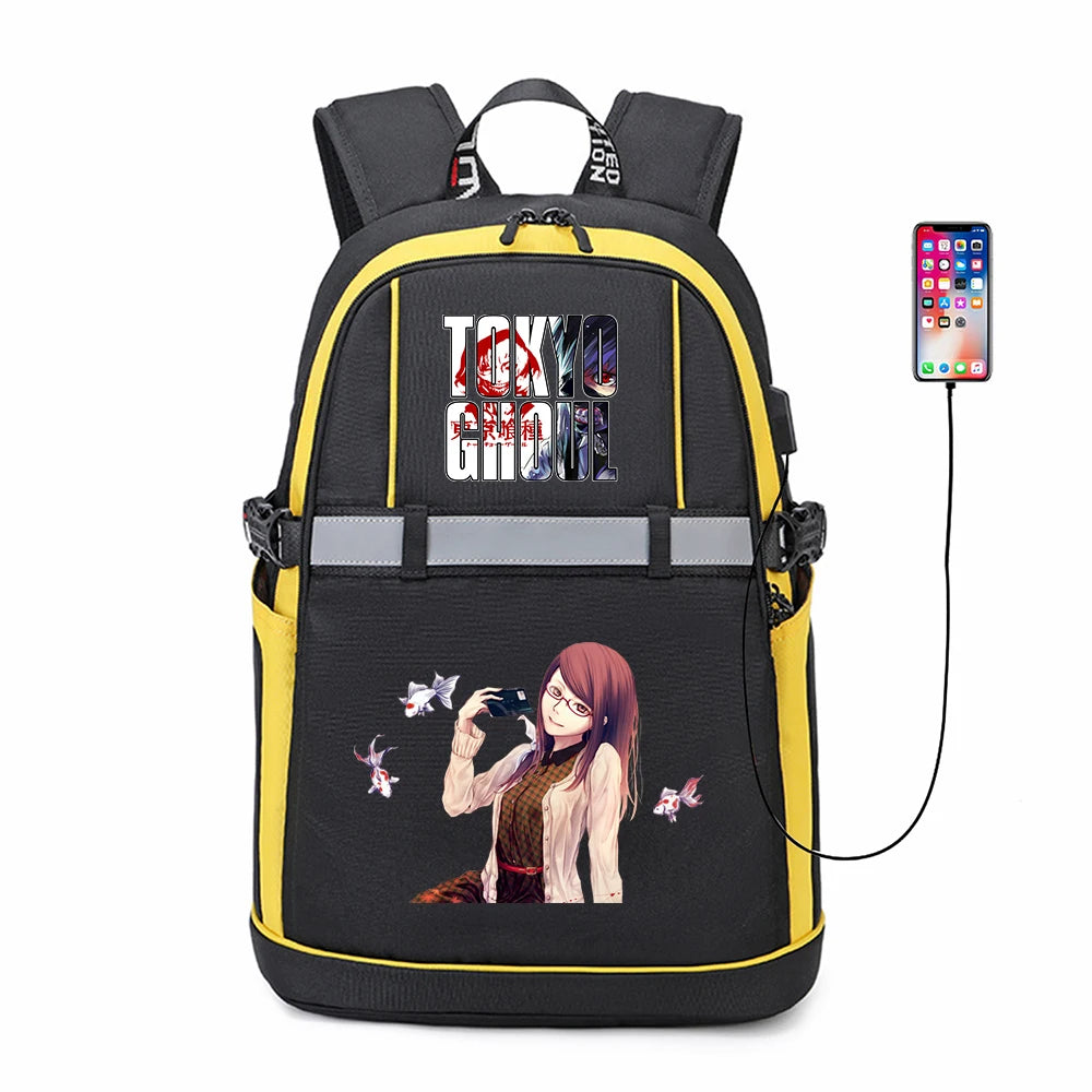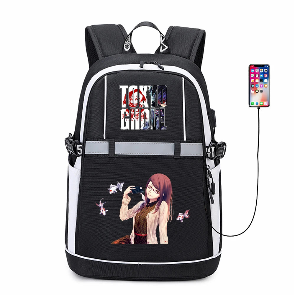 Tokyo Ghoul USB Backpack Reflective Stripe Teenger Schoolbag