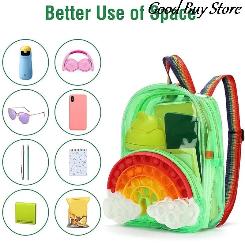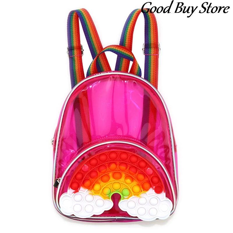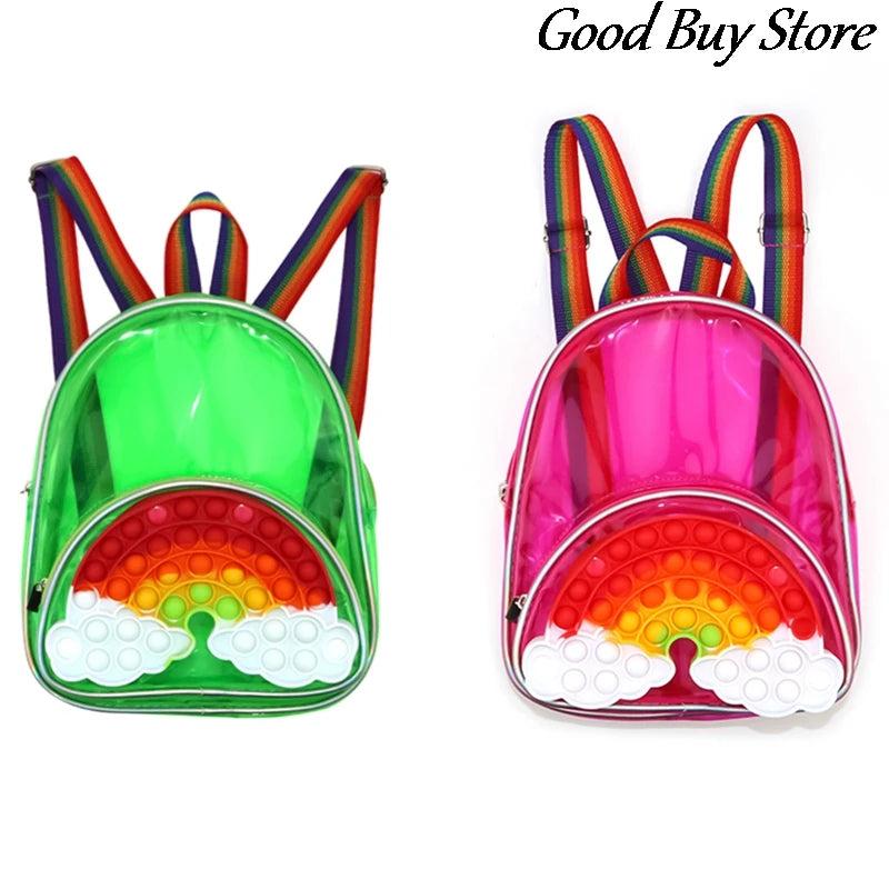 Transparent Fidget Backpack Kids Schoolbags Rainbow Bookbag 3D Bubble Backpack