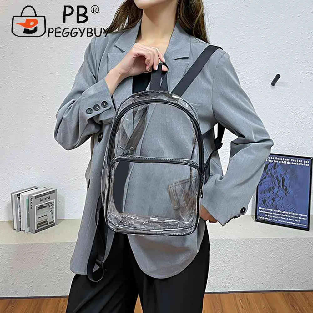 Stay stylish and organized with this transparent PVC backpack. It's perfect for school, travel, or everyday use. The clear design allows you to easily see and find items inside.