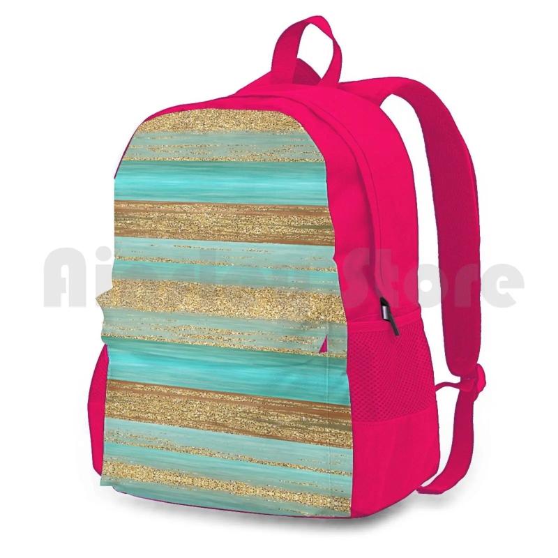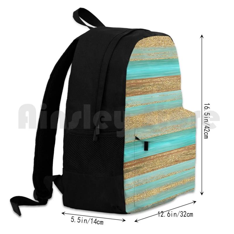 Description:Stay stylish while on the go with this modern glitter patterned outdoor hiking backpack. Perfect for riding, climbing, and other sports activities.Features: Turquoise and brown faux glitter stripes art design Ideal for outdoor activities like hiking, riding, and climbing Modern and stylish look with a touch of glamour Spacious and...