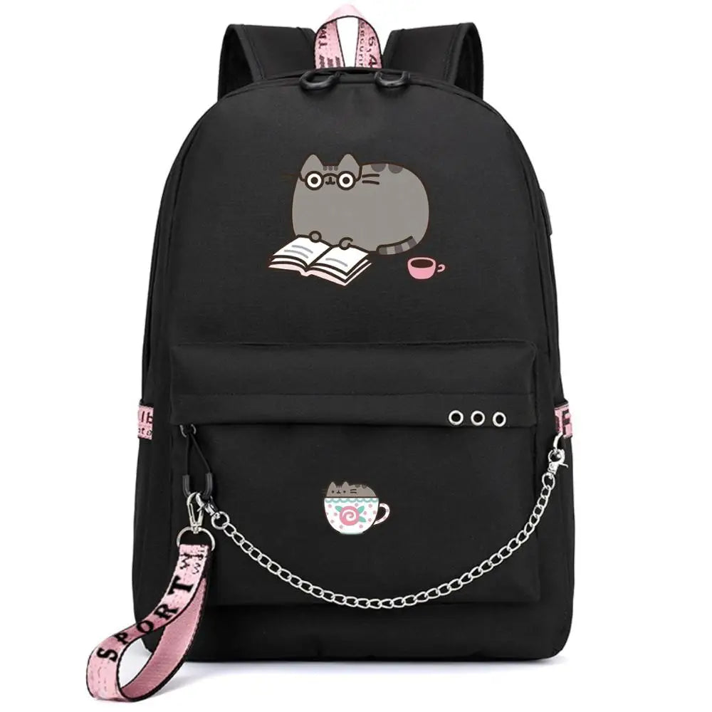 Unicorn Cat USB Port Backpack School Bags for Boys Girls