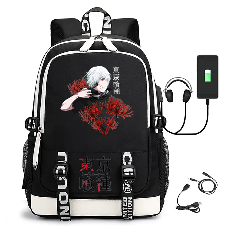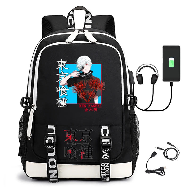 USB Charging School Bag for Boys Girls Tokyo Ghoul Print