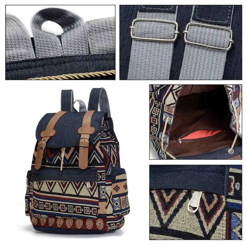 This vintage ethnic backpack is made of durable canvas, perfect for teenagers to use as a schoolbag or for travel. The bohemian style adds a unique touch to any outfit.