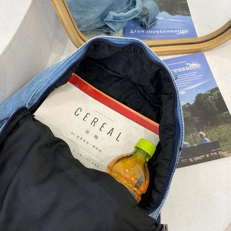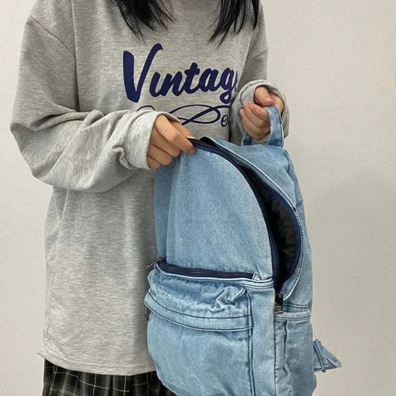 This vintage washed denim backpack is perfect for daily use. It features a large capacity, zippers for easy access, and a stylish design that is great for couples.