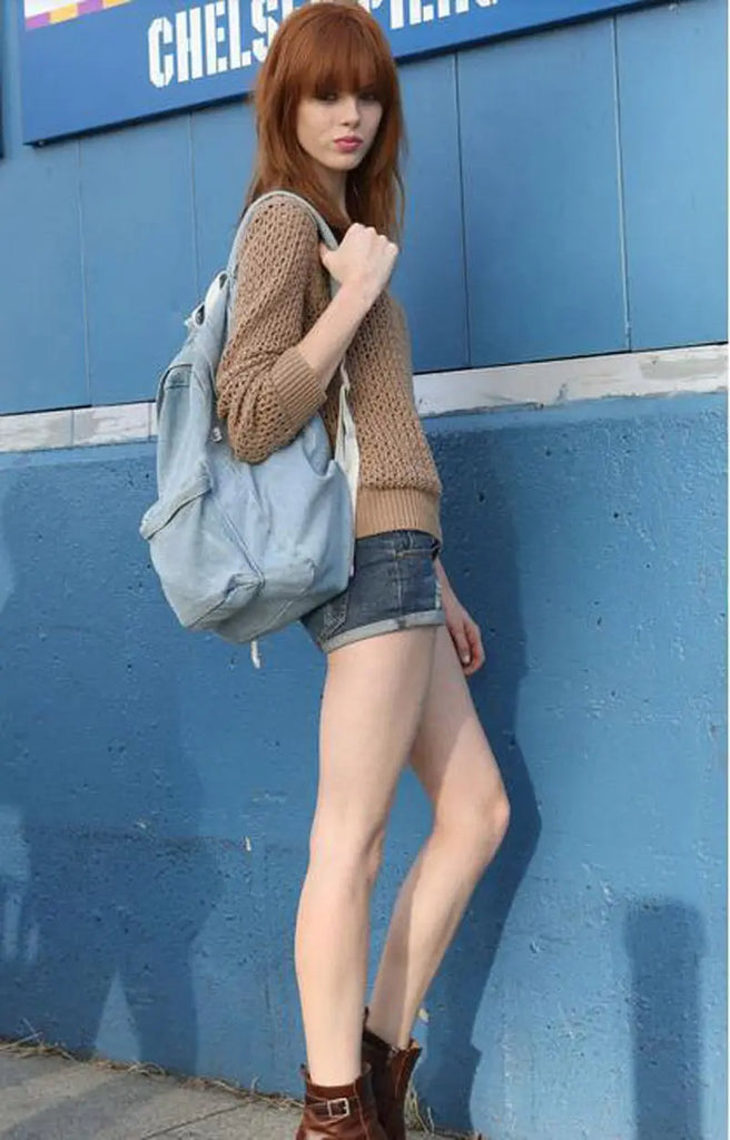 Vintage Washed Denim Jean School Bag Travel Backpack