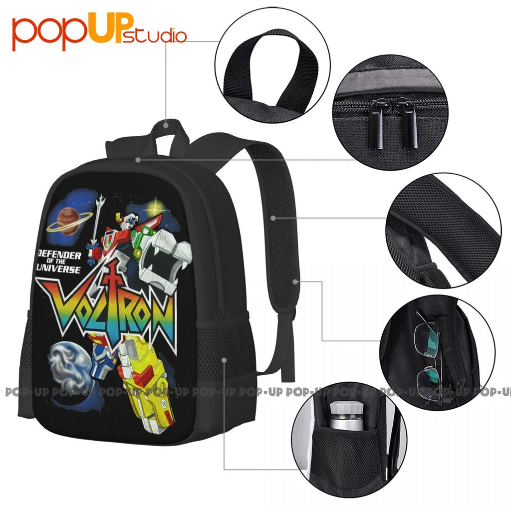 This large capacity bookbag is designed in a sports style resembling the iconic Voltron TV show. Perfect for school, sports, or everyday use.