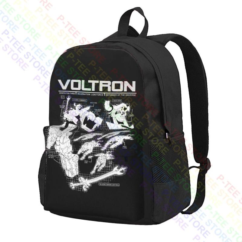 Stay organized on-the-go with this large capacity backpack featuring Voltron Schematics Generation Three Lion Force design. Ideal for swimming, storage, and travel.