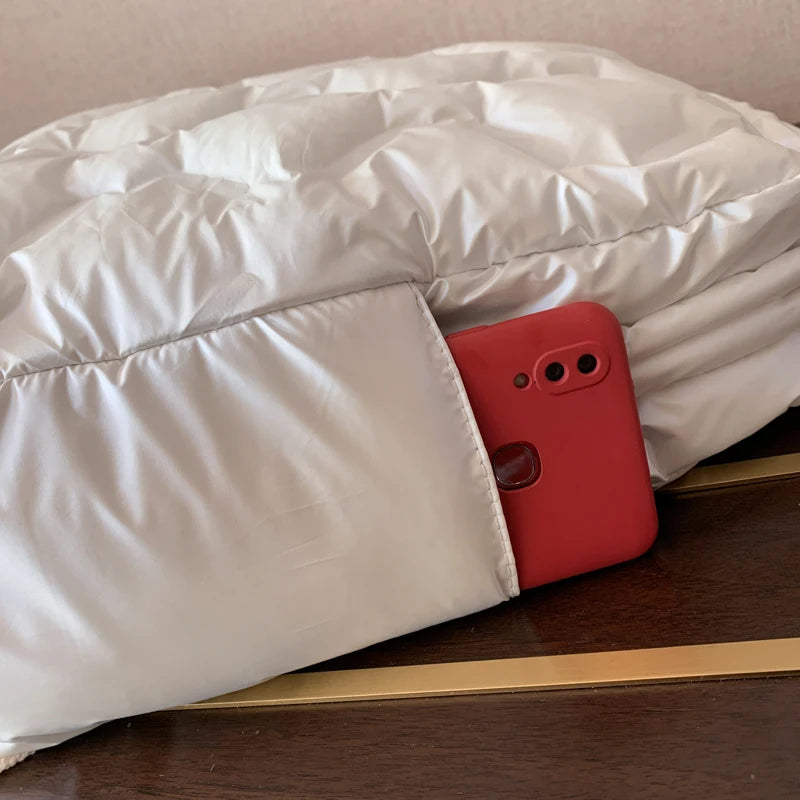 Stay cozy and stylish with this soft warm space down backpack, perfect for fall and winter. Ideal for school or travel, this lightweight cotton backpack is compact and convenient.