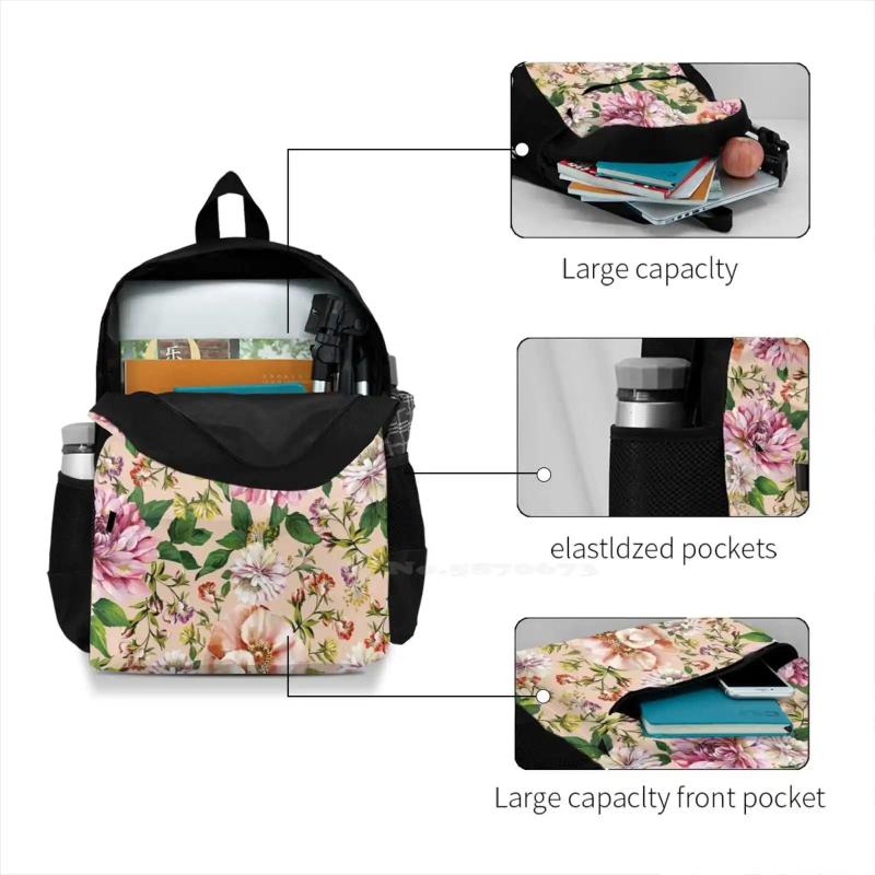 This backpack features a beautiful watercolor flowers pattern print, perfect for teens and college students. Ideal for carrying laptops and traveling. Show off your love for flowers, roses, and nature in style during spring and summer.