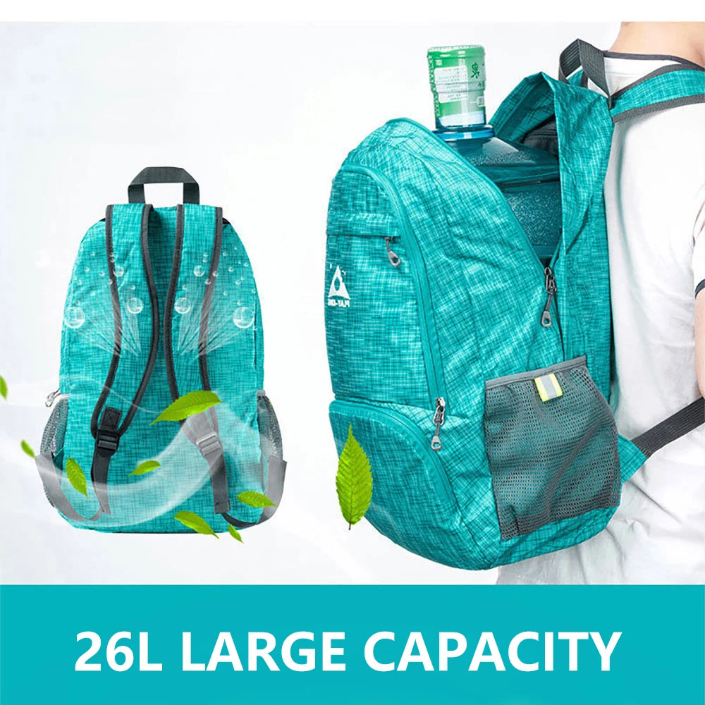 Stay organized and secure with this anti-theft folding backpack that is perfect for weekend camping trips. It's waterproof and ideal for outdoor adventures.