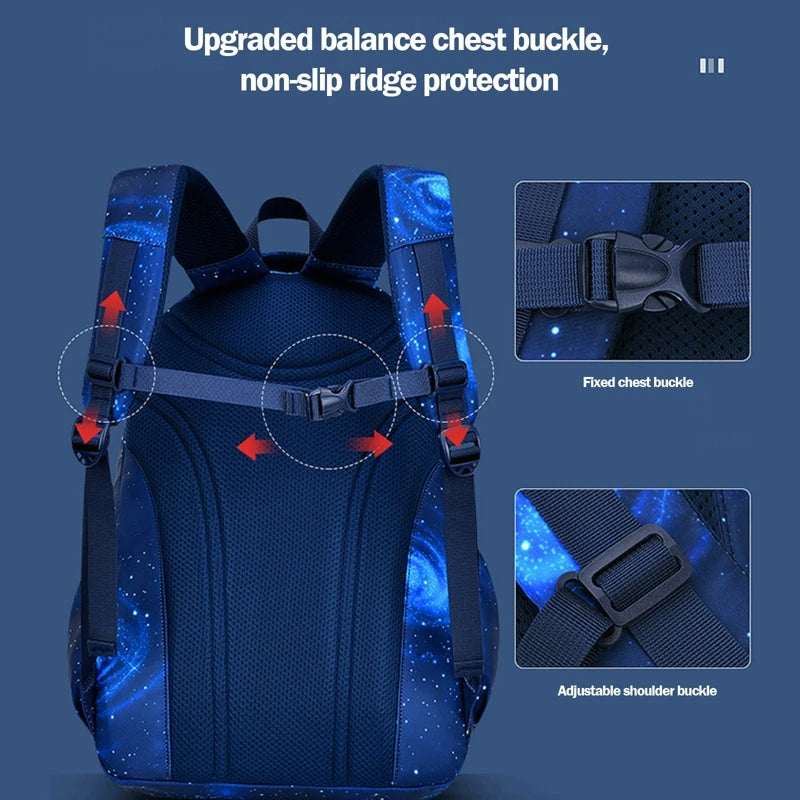Description:Get your child ready for school with this durable and waterproof backpack that features a side-opening design. Ideal for primary school students, this backpack is comfortable and stylish.Features: Waterproof backpack for primary school students Durable and comfortable design Side-opening for easy access Ideal for boys Perfect for carrying school supplies...
