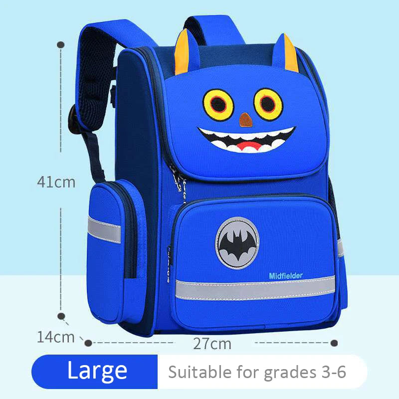 This waterproof school bag is designed for boys and girls aged 6-12 years. It is perfect for carrying books and supplies. The backpack features a fun cartoon design.