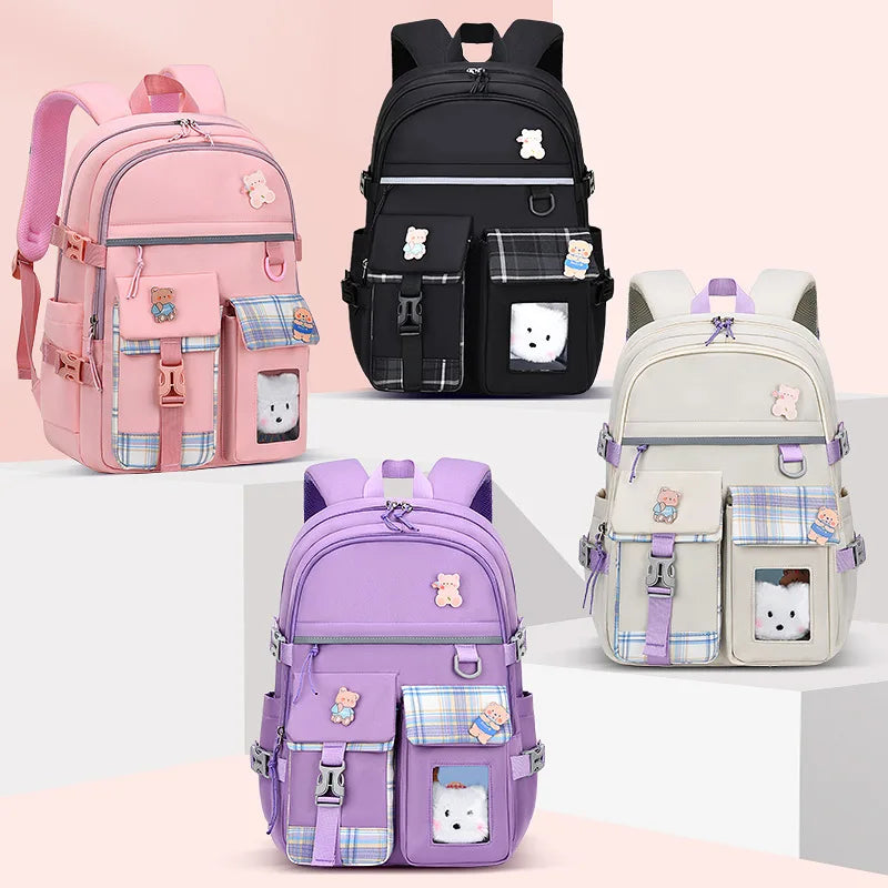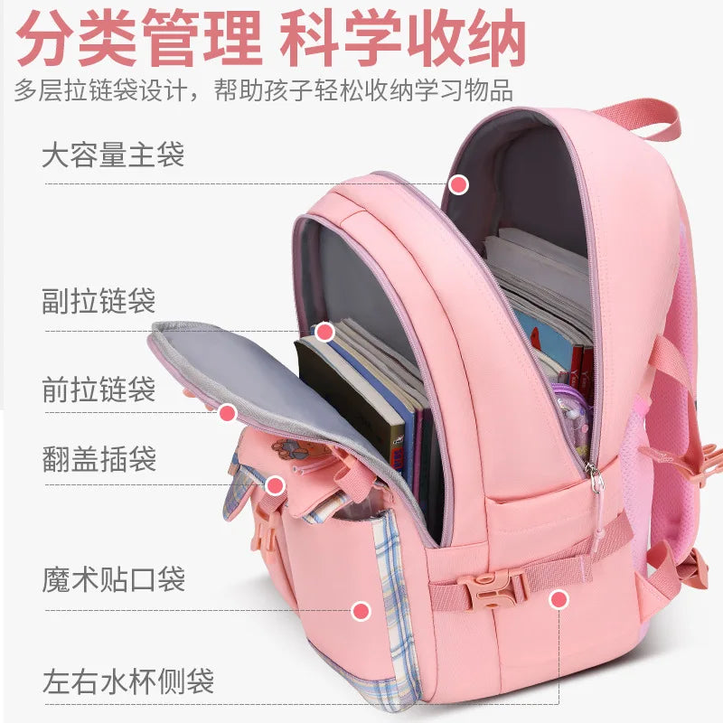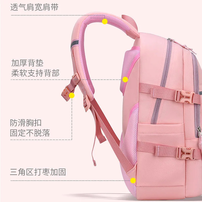 This waterproof school bag is designed for children, featuring orthopedic support for their back. It is ideal for girls, boys, and teens, offering a comfortable and stylish option for carrying books and school supplies.