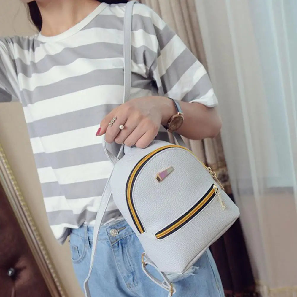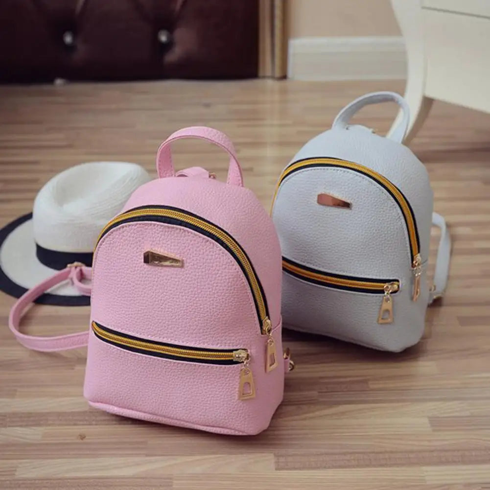 Waterproof Faux Leather Girls Backpack Solid Adjustable Shoulder Straps