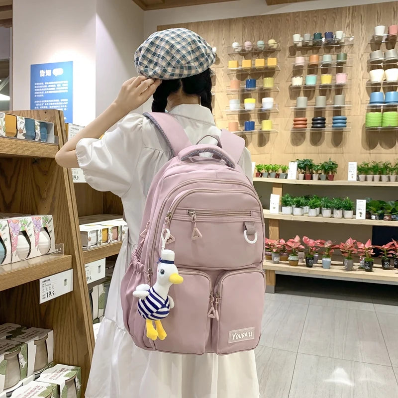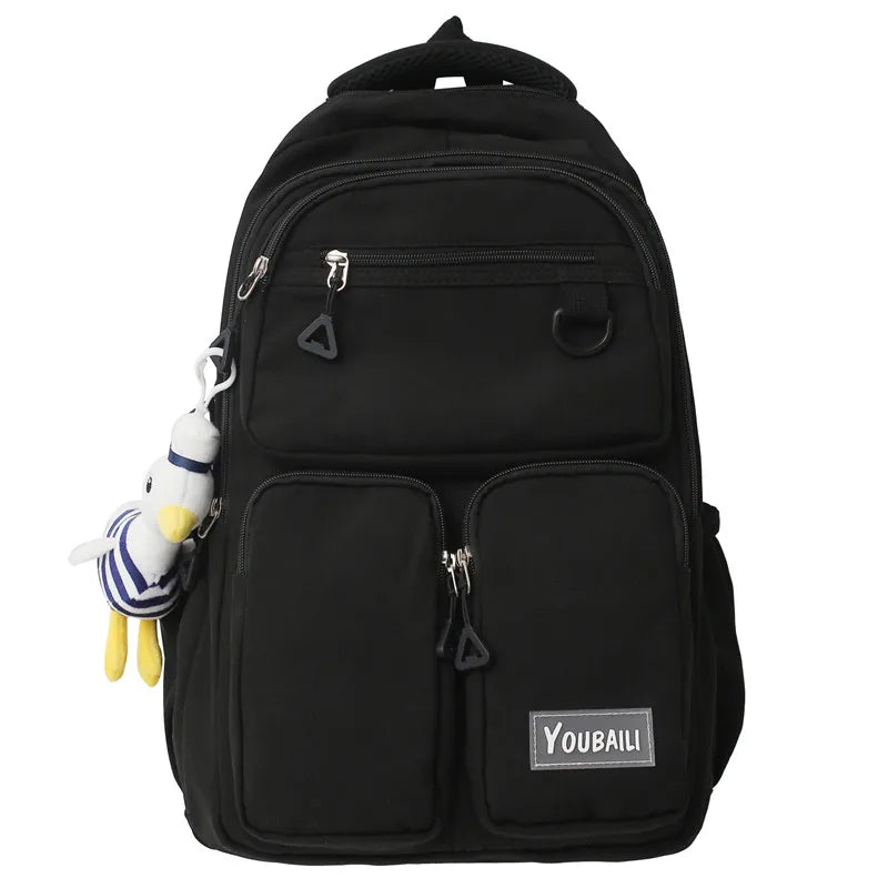 Stay organized with this multi-pocket nylon backpack, perfect for college students and casual use. It is waterproof and durable, ideal for carrying books, laptops, and everyday essentials.