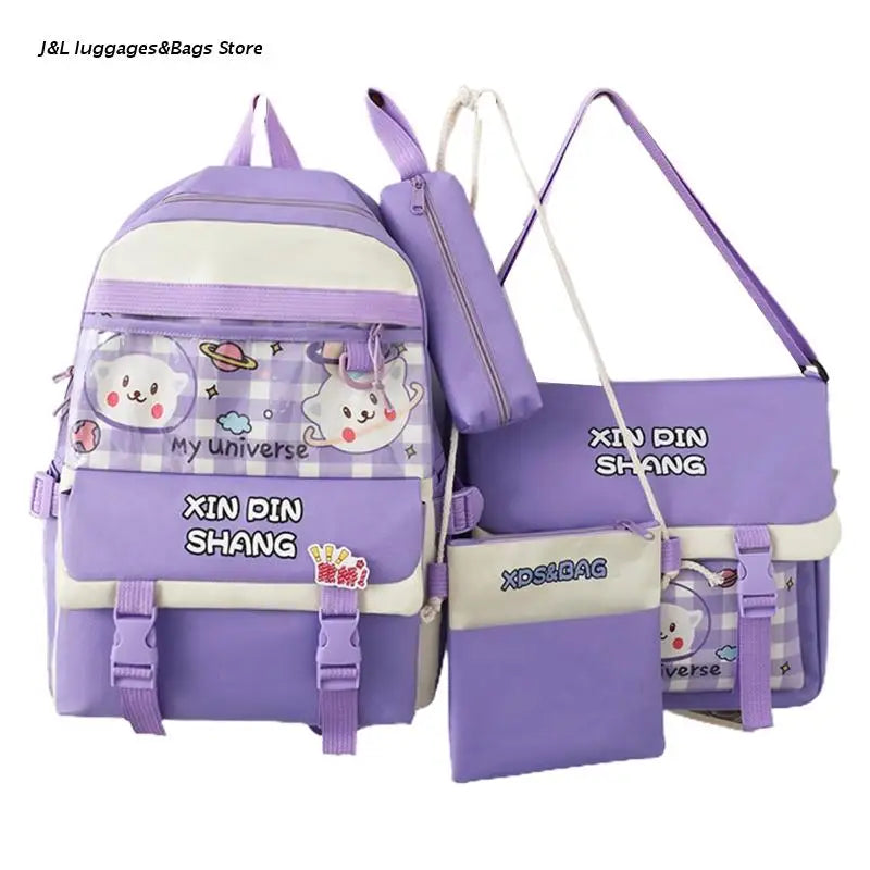 Description:This cute and durable backpack is perfect for school, college, or travel. Made of waterproof nylon material with a lovely pendant pin for added style.Features: Waterproof nylon material for durability Features a lovely pendant pin for added style Ideal size for school, college, or travel Adjustable straps for comfortable carrying...