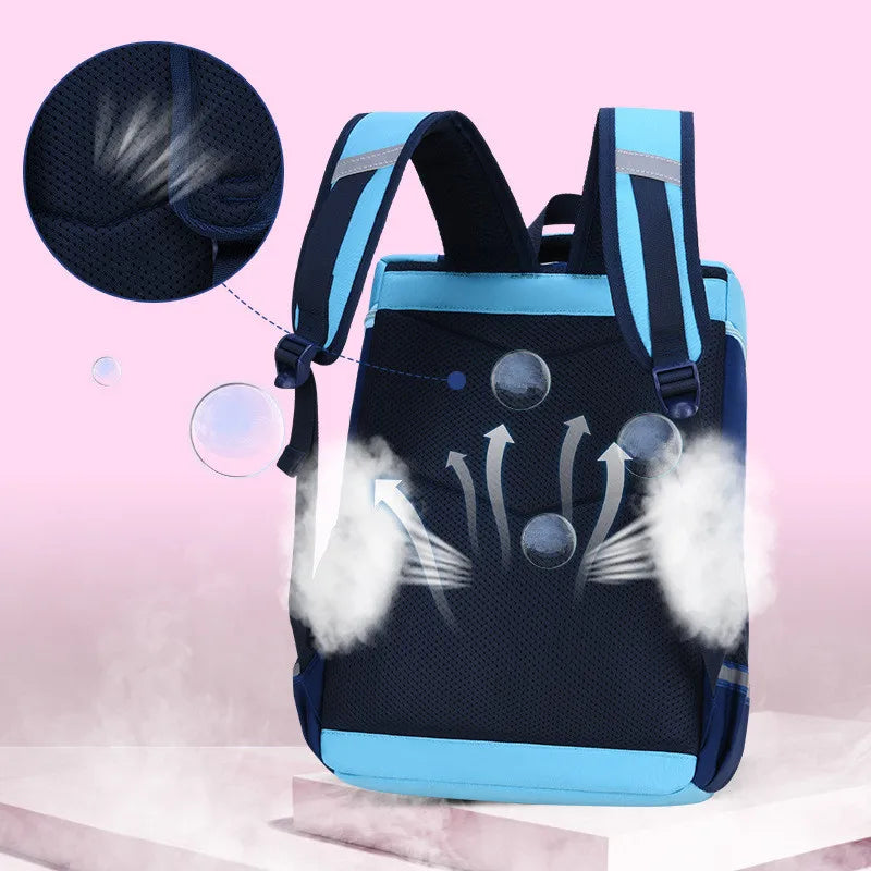 This waterproof school backpack is designed for children, helping prevent back strain. It is perfect for primary school kids.