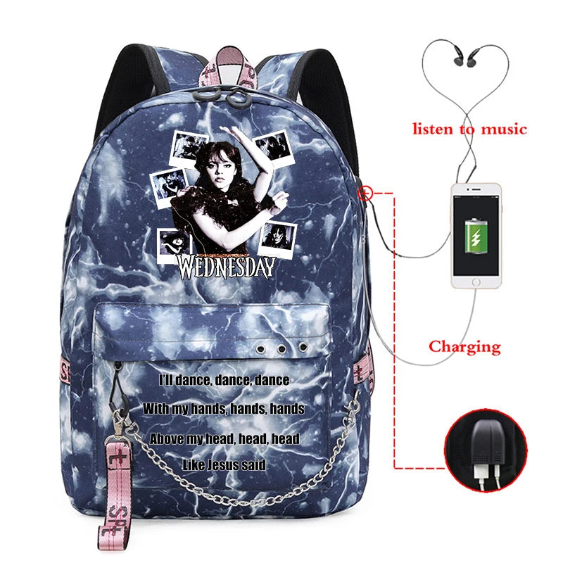 Wednesday Addams School Backpack for Teenager Girls with USB Port