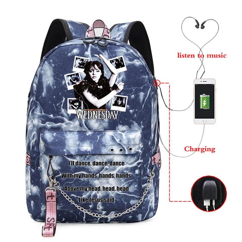 Wednesday Addams USB Charging School Backpack Harajuku Girls Boys