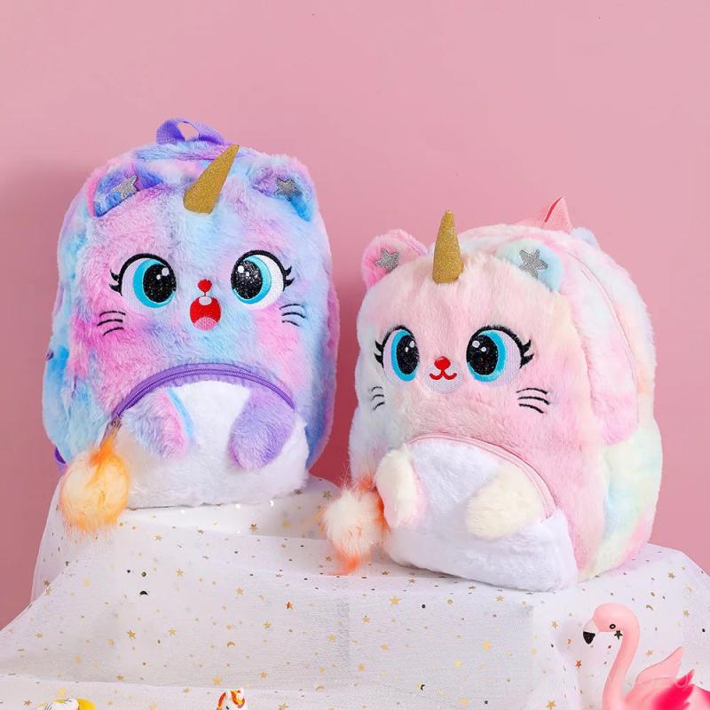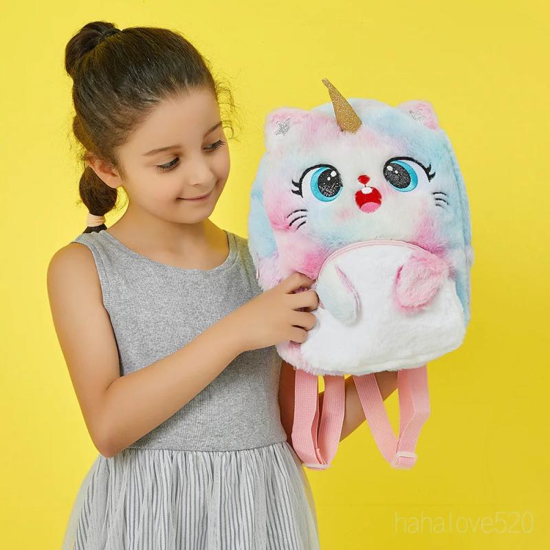 Winter Cartoon Plush Backpack for Girls, Kindergarten School Bag