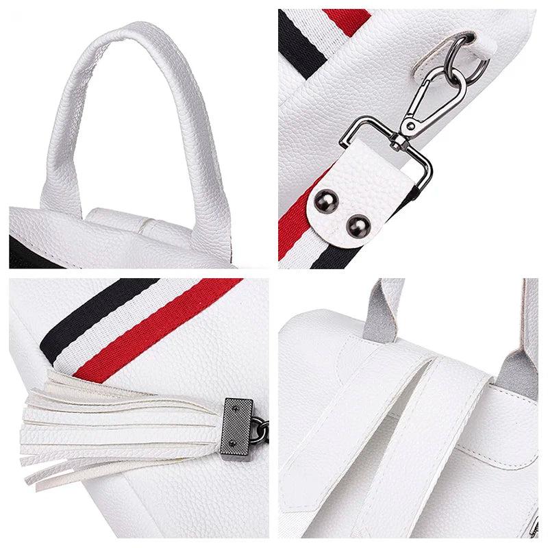 Women's Leather tassel Backpack Ribbon School Bags