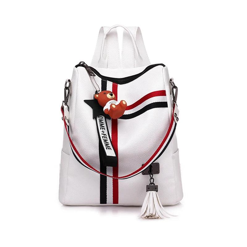 This stylish backpack is perfect for girls and women. It features a tassel design, spacious interior, adjustable shoulder straps, and is ideal for school or travel.