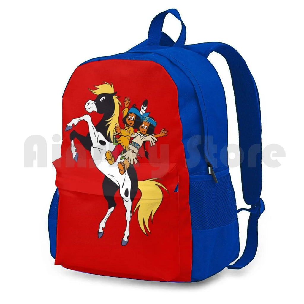Yakari And Rainbow On Horse Red Outdoor Hiking Backpack Climbing Sports Bag