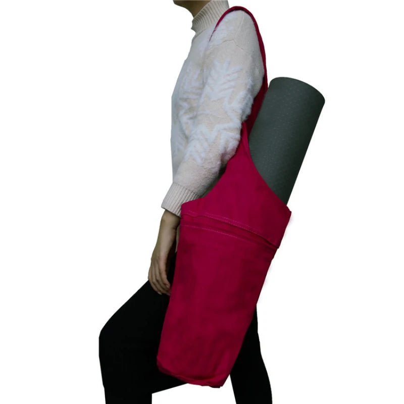 Stay organized and stylish with this multifunctional yoga mat bag made of durable cotton canvas. Features an adjustable shoulder strap, storage pocket, and comes in 5 vibrant colors.