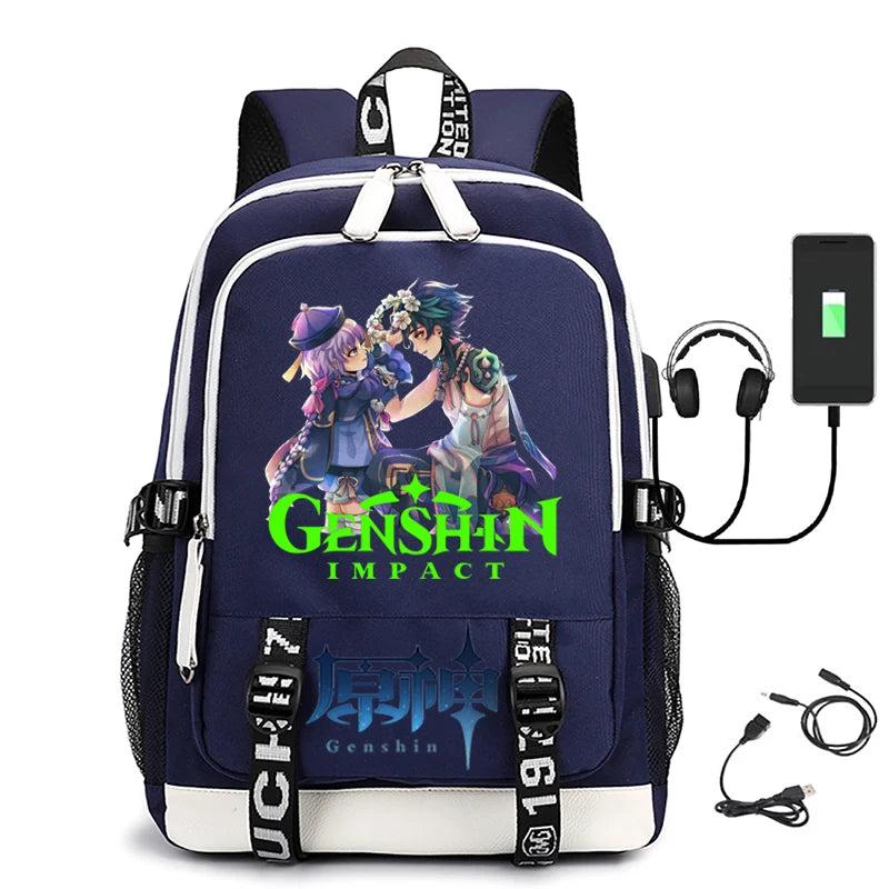 This mobile game Yuanshen peripheral backpack is designed for students with a USB headset compartment. It offers ample space for carrying your essentials.