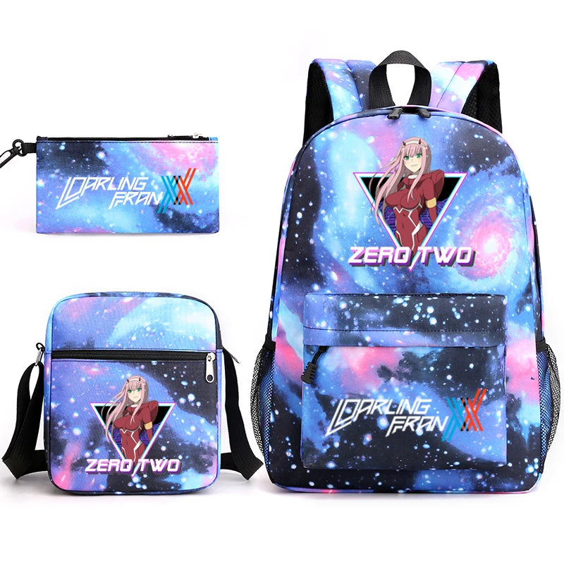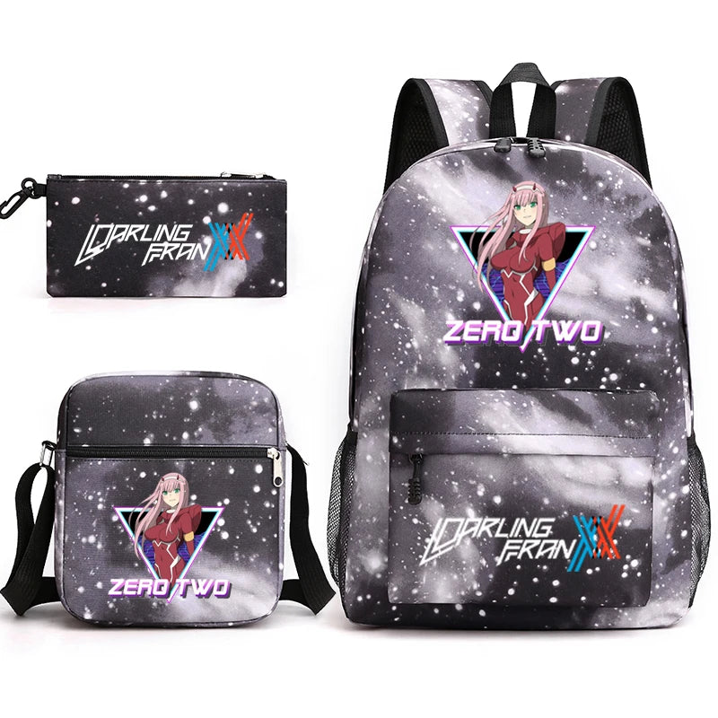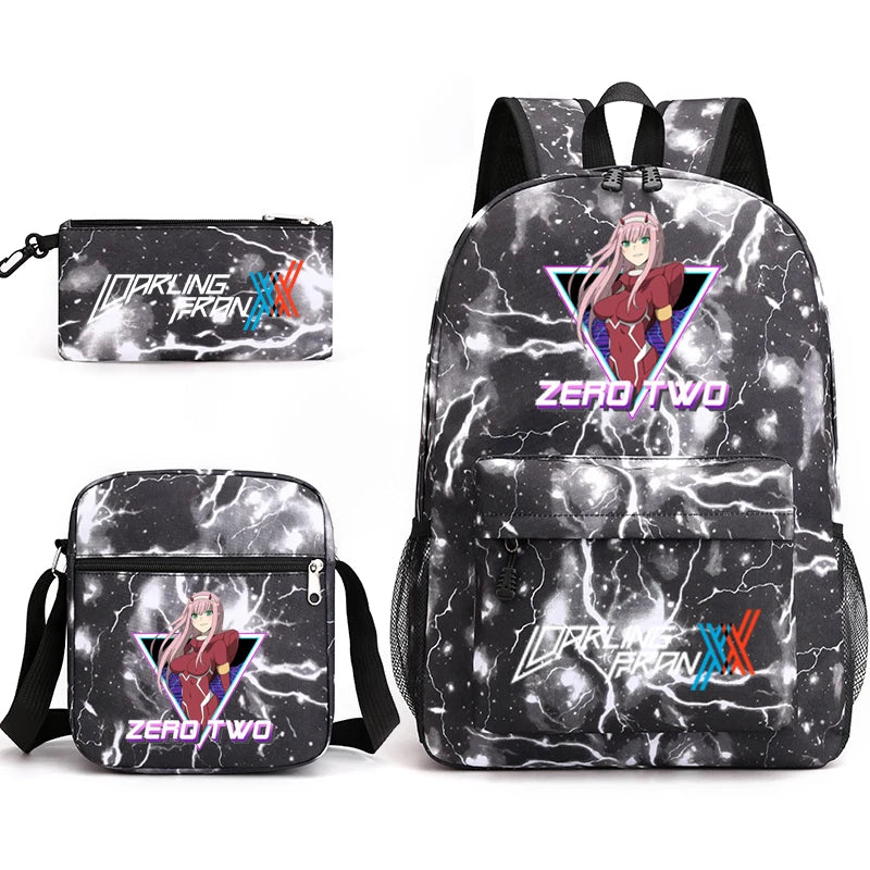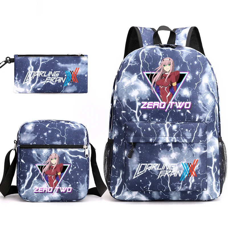 Zero Two 3 Piece Set Canvas Backpack for Kids Boys and Girls