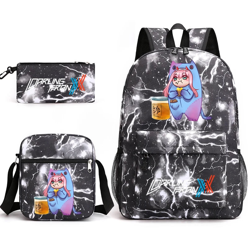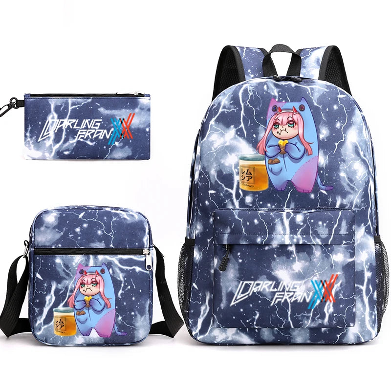 Zero Two Canvas Backpack 3 Piece Set Kids School Bags Supplies