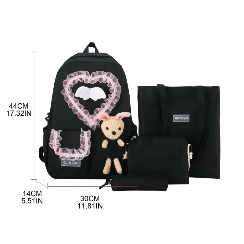 - 4-piece set includes backpack, shoulder bag, handbag, and pencil case