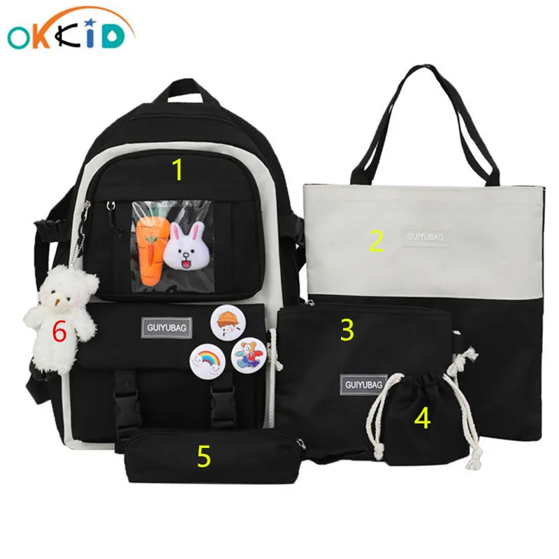 6pcs School Bags Teenage Girls Bookbag Handbag Shoulder Bag Student Laptop
