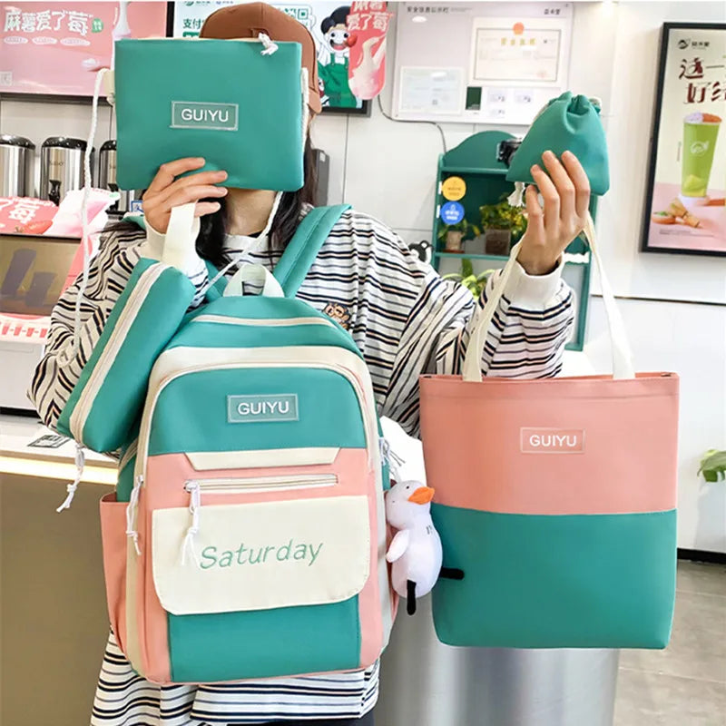 This 6-piece set includes a school backpack, handbag, shoulder bag, and pencil bag suitable for teenage girls. Ideal for school or everyday use.