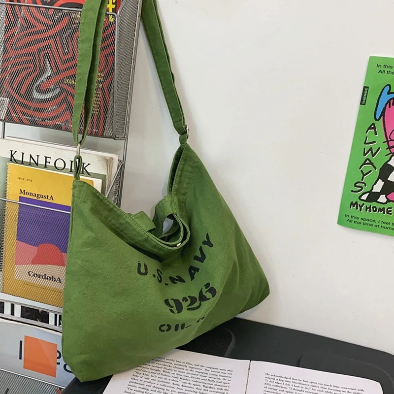 90s Canvas Oversized Slouchy Bag Y2k Stylish School Laptop Handbag