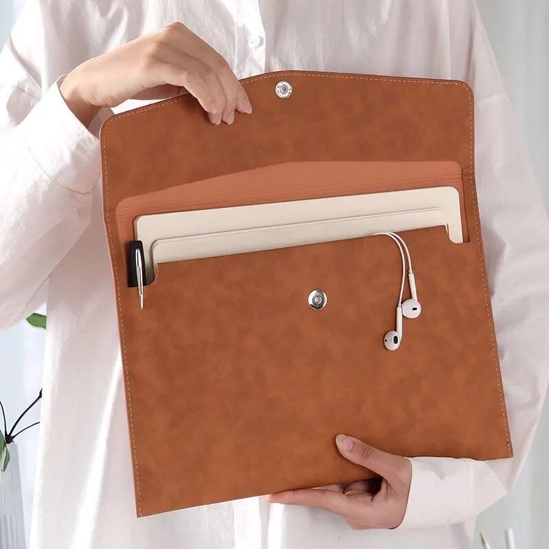 Stay organized with this A4 PU leather file folder that offers a large-capacity storage solution for all your business information. It's perfect for office use and helps you keep everything in one place.
