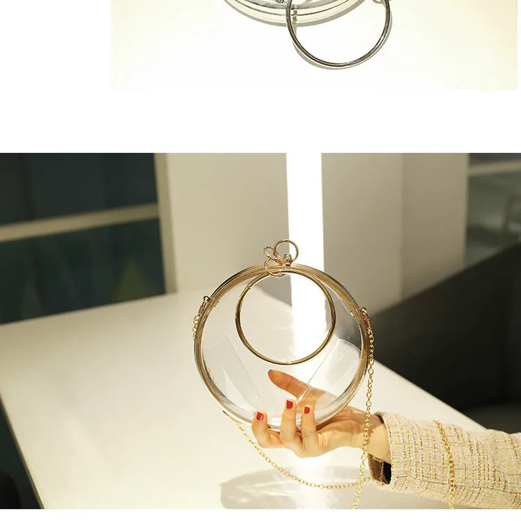 This stylish handbag is made of transparent acrylic material, perfect for dinner outings.