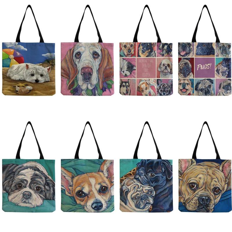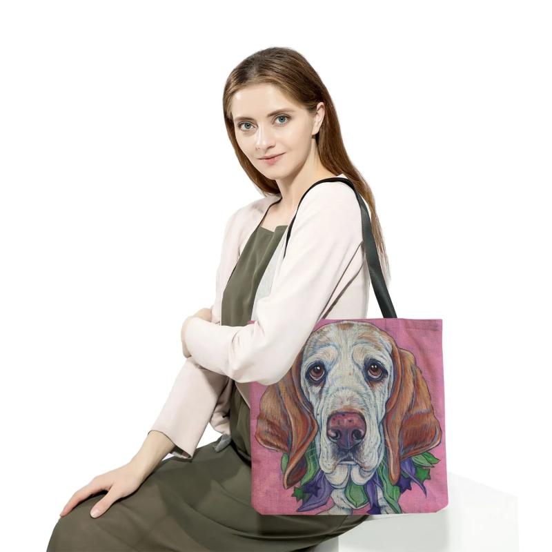 Animal Shoulder Bag Cartoon Oil Painting Dog Ladies Leisure Shopping Bag