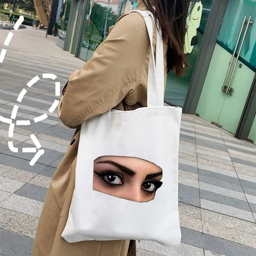 Arabic Woman Crown Hijab Face Muslim Islamic Eyes Cover Canvas Shoulder Handbag
