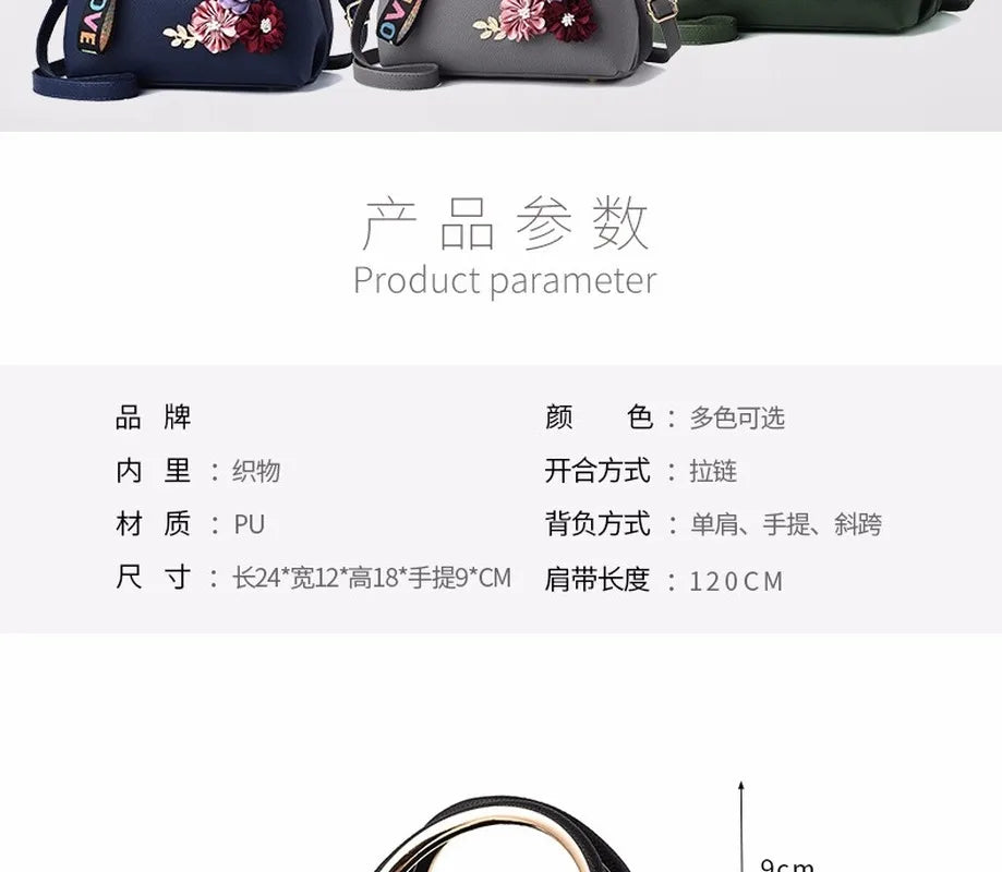 This elegant shoulder messenger bag is made of high-quality PU material and features a beautiful artificial flower design. It is versatile and perfect for everyday use.