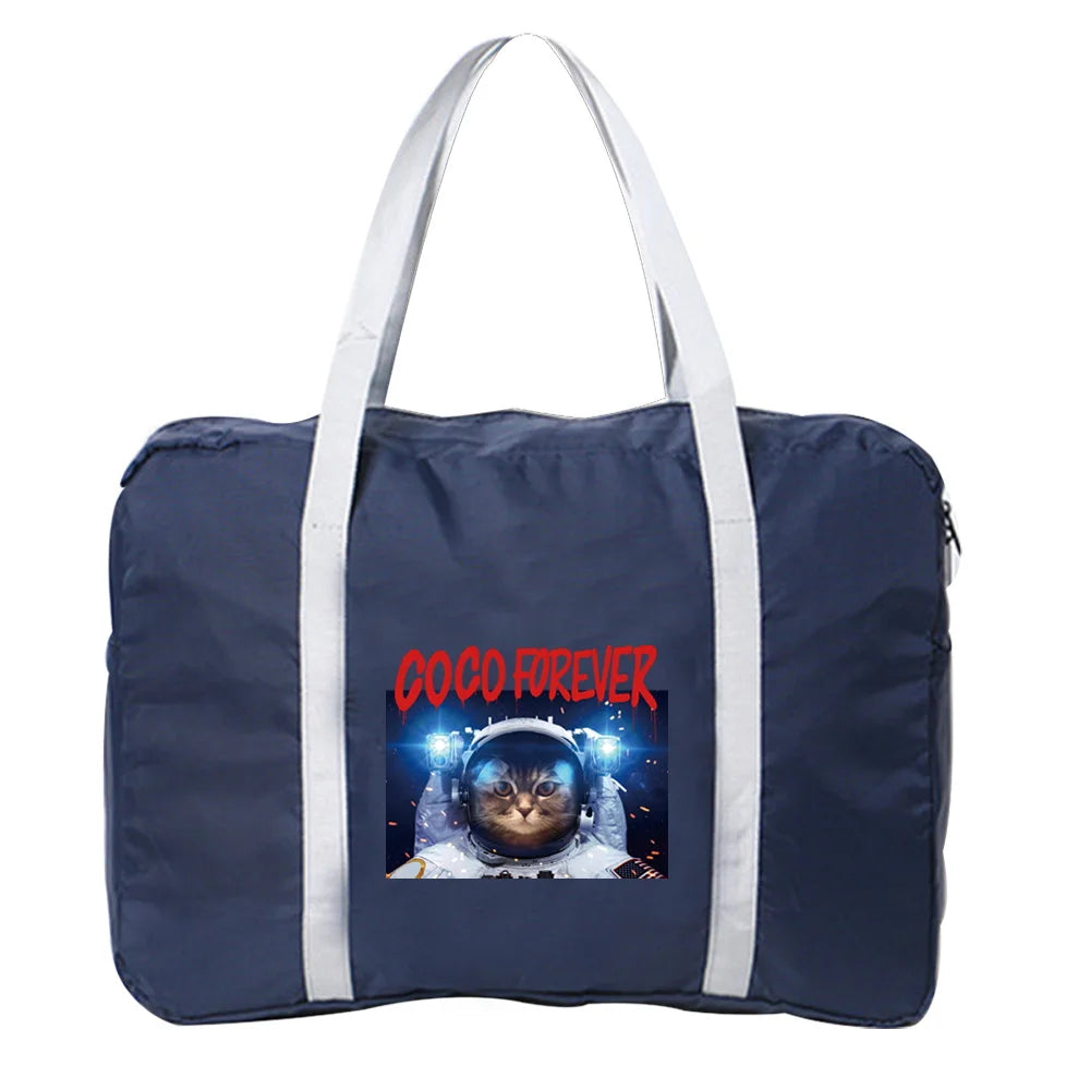 This travel bag is perfect for outdoor activities, sports, makeup, phones, sundries, toiletries, and more. It is a duffle-style bag that can hold clothes, and it is foldable for easy storage.
