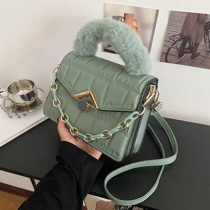 Autumn Chain Diamond Small Square Bag Faux Fur Handbag