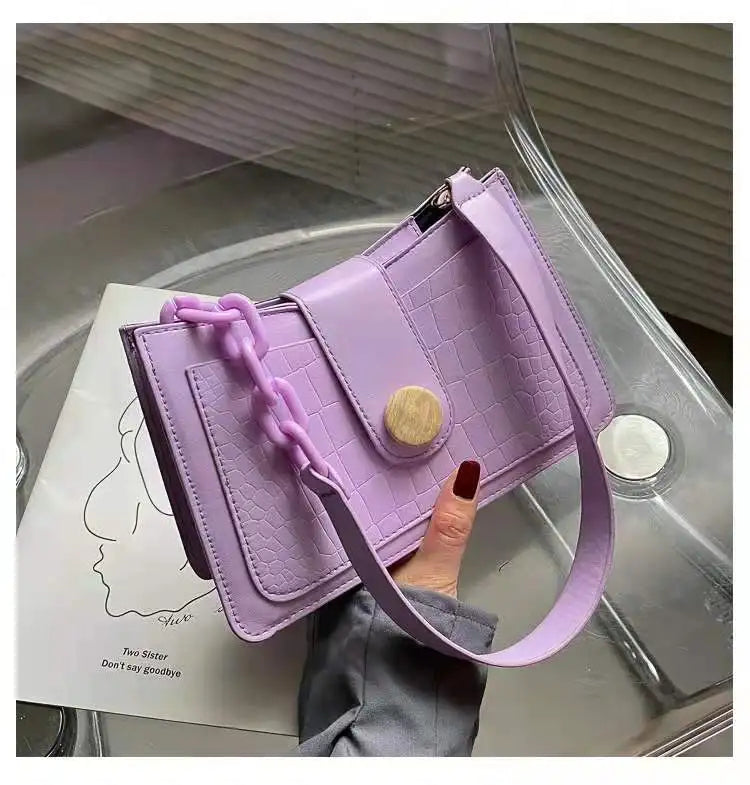 - Features a chain strap for added style