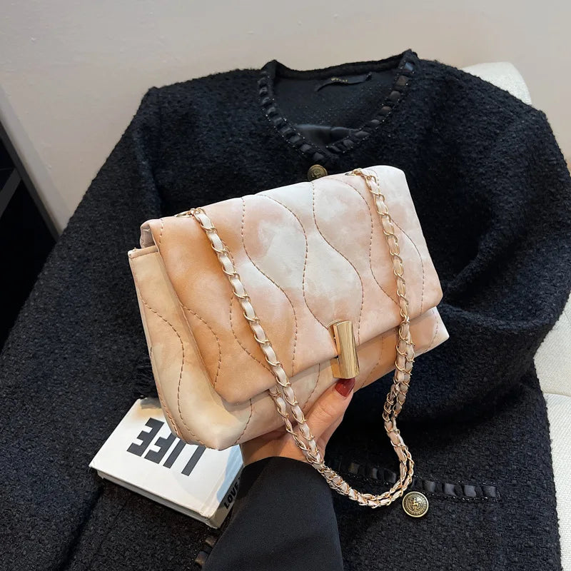 Elegant and stylish autumn shoulder bag with chain strap, flap design, detailed embroidery, and made of high-quality PU leather, perfect for ladies.